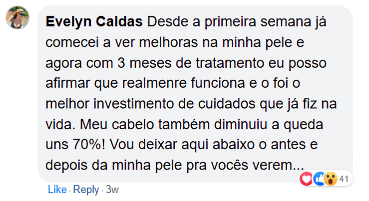 "... desde a primeira semana já comecei a ver melhoras na minha pele."